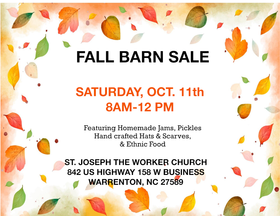 2025 Fall Barn Sale Volunteer Dates in PDF Format